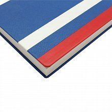 Бесшовная комбинация материалов - наша технология производства, когда для сочетания разных материалов на обложке не требуется швейная методика. Это очень удобно для составления самых разнообразных колористических композиций на поверхности обложки. Визуально и тактильно - комбинирование материалов попросту не заметно. Приведенная в этом разделе модель, как Вы видите, повторяет цвета Государственного флага российской Федерации. Этот ежедневник из эко-кожи выполнен в классической твердой обложке формата А5.