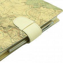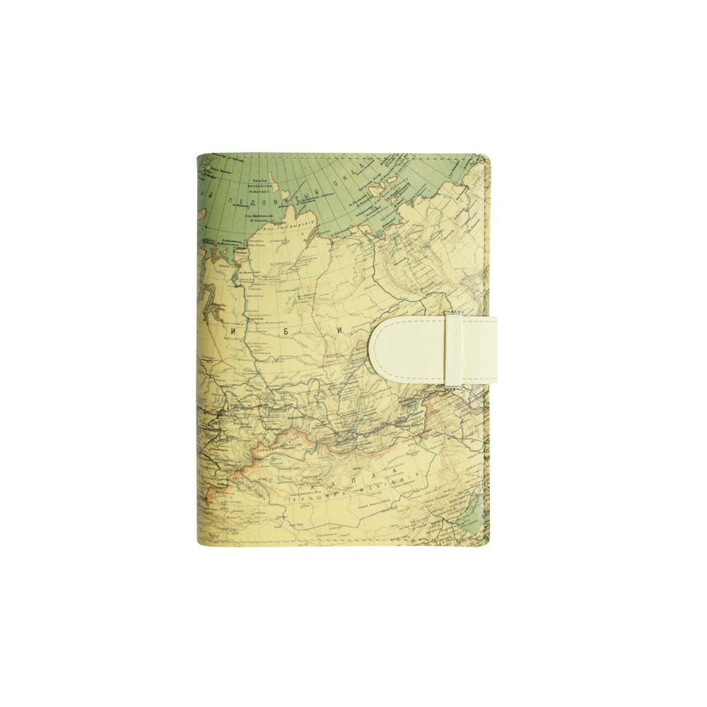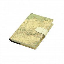 Модным трендом последних лет является вырубная гибкая светло-бежевая обложка, в которой выполнен именно этот ежедневник. Обложка, из которой Вы можете беспрепятственно извлечь книжный блок, называется "обложка-портфолио" и изделия в этой обложке обладают очень удобным свойством - Вы можете заменить устаревший книжный блок на новый. Это очень удобно и стильно именно для обложек из эко-кожи, так как, в течение эксплуатации эти обложки приобретают с каждым годом - все более винтажный вид. Обложка снабжена фиксирующим хлястиком, который снабжен петлей для ручки. Этот ежедневник выполнен в стиле коллекции "под старину" с принтом карты мира 16-17 в. и будет являться прекрасным дополнением для подарочных наборов из соответствющего раздела.