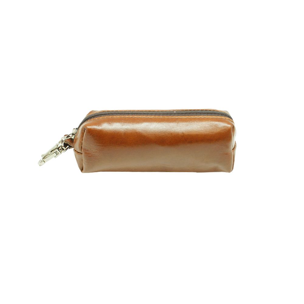 Горизонтальная ключница-футляр из натуральной светло-коричневой кожи на молнии со внутренним брелоком и внешним карабином для крепления. Эта ключница выполнена для большего количества ключей в связке, нежели классическая ключница. Эта модель наиболее удобна для ношения в сумке, кейсе портфеле, в которых Вы можете пристегнуть ее при помощи карабина. И ключи в полной сохранности и вещи в сумке не будут поцарапаны большой связкой. Удобно и стильно.