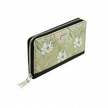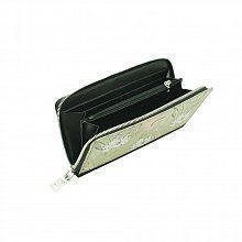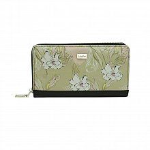 Большое горизонтальное портмоне из гладкой натуральной кожи на молнии, большими отделениями для купюр, дорожных чеков, а также карманом на молнии для монет. Для пластиковых карт предусмотрены дополнительные двенадцать кармашков в двух отделениях. Модель выполнена с односторонним полноцветным принтом из серии цветы в приглушенных тонах. На фронтальной стороне расположен декоративный шильд с лого. Оптимальный выбор для портмоне, которое удобнее всего носить в повседневной средней сумке, кейсе, портфеле для ноутбука или кармане верхней одежды. Объем портмоне вполне подходит для использования в поездке и для дорожных документов. Лучший выбор на все случаи жизни!