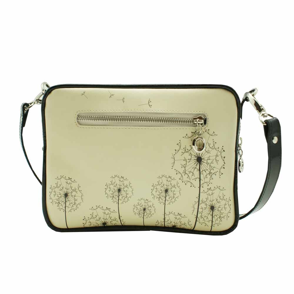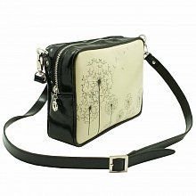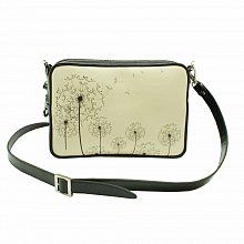 Компактная прямоугольная дамская сумочка из комбинированной натуральной кожи, на молнии и с внешним маленьким карманом на молнии для мобильного телефона. Тонкий оригинальный принт из серии "Одуванчики" (в коллекции есть и другие изделия с таким принтом) делает эту модель превосходной для весеннего сезона. Тонкий изящный ремешок на плечо регулируется по длине. Небольшой размер сумочки делает ее очень удобной и отлично впишется в джинсовый стиль Вашей одежды. Внутри сумочка дополнена карманом на молнии для портмоне.