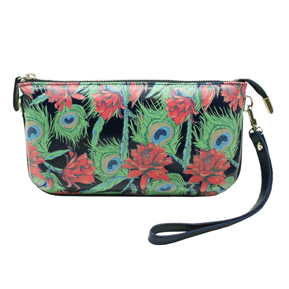Сумка-клатч из натуральной кожи "Темпо" с односторонним полноцветным принтом с изображением цветов...С обратной стороны расположен декоративный шильд с лого. Создавая эту удачную серию женских маленьких сумочек мы думали о быстротечности времени...О, темпо, о - время...Ритм жизни постоянно ускоряется и мы, зачастую, не этого замечаем. Остановись, мгновение! Спеша по делам, не забудьте Ваш клатч в прихожей, ведь миниатюрный клатч обязательно есть в арсенале любой женщины. Внутреннее отделение оснащено карманом на молнии и небольшими кармашками для пластиковых карт. Ремешок на руку пристегивается декоративным карабином. Замечательный стильный клатч.